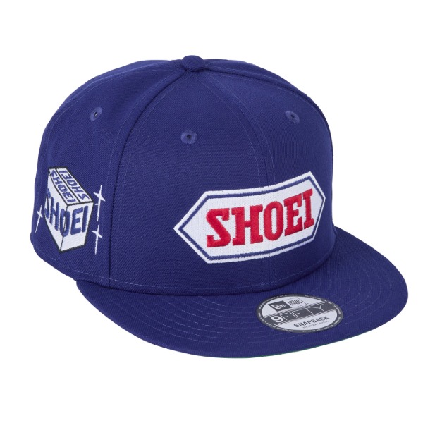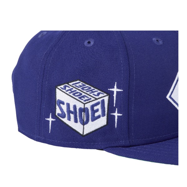 鮮やかなブルーに、「NEW ERA」「SHOEI」両ブランドのロゴが映える。