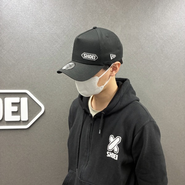 黒ベースに映える、「NEW ERA」「SHOEI」両ブランドの控えめなダブルロゴ。