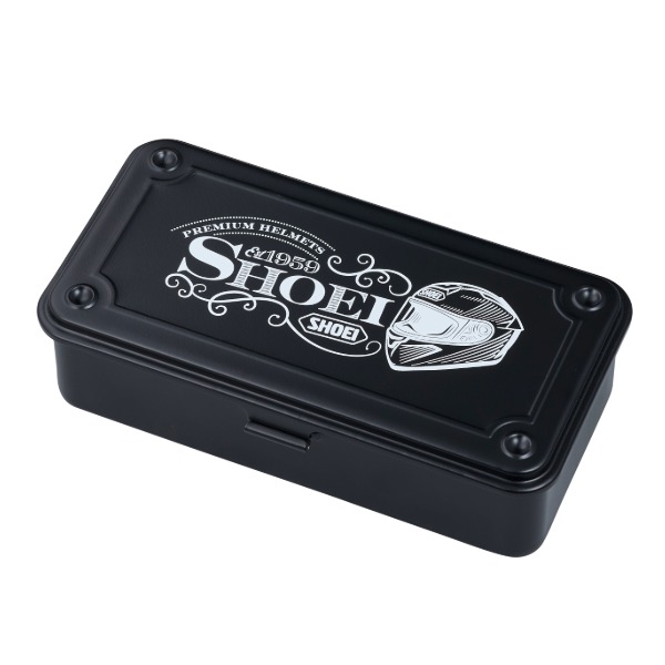 クラシカルなスチール製の工具箱をイメージしたスチールケースをベースに 蓋の面にSHOEIロゴとヘルメットのイラストをプリントした おしゃれな「インテリアツールボックス」が新登場◎◎◎