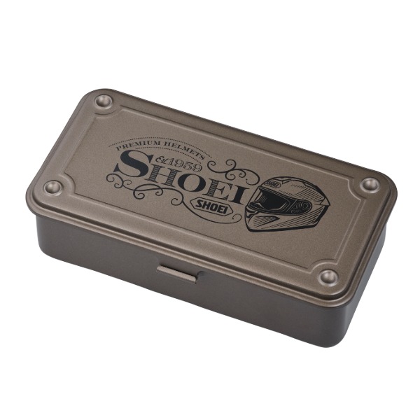 クラシカルなスチール製の工具箱をイメージしたスチールケースをベースに 蓋の面にSHOEIロゴとヘルメットのイラストをプリントした おしゃれな「インテリアツールボックス」が新登場◎◎◎
